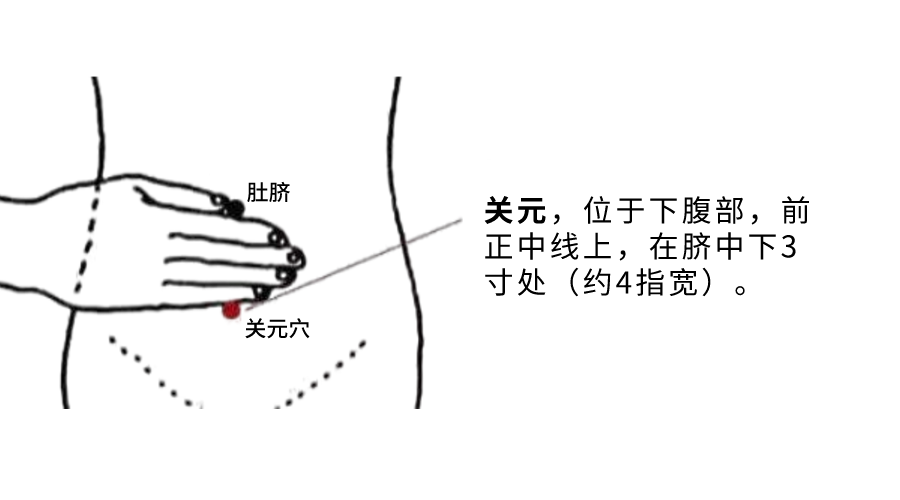关元,在脐下3寸,男子藏精,女子蓄血之处。具有培元固本、补益下焦之功,凡元气亏损均可使用。