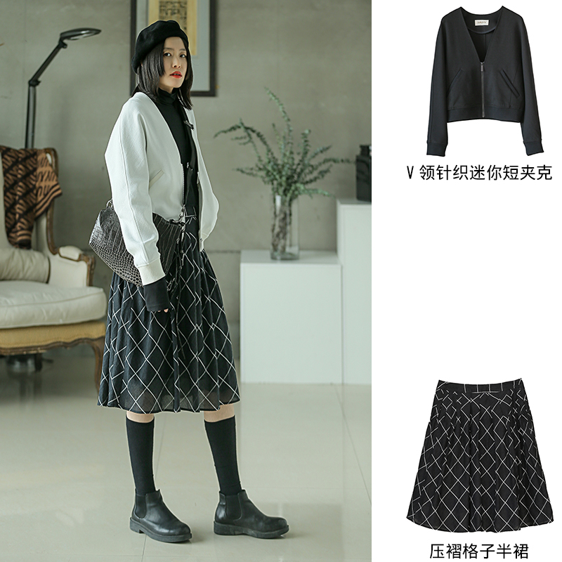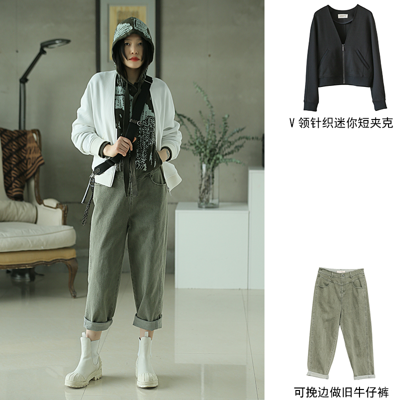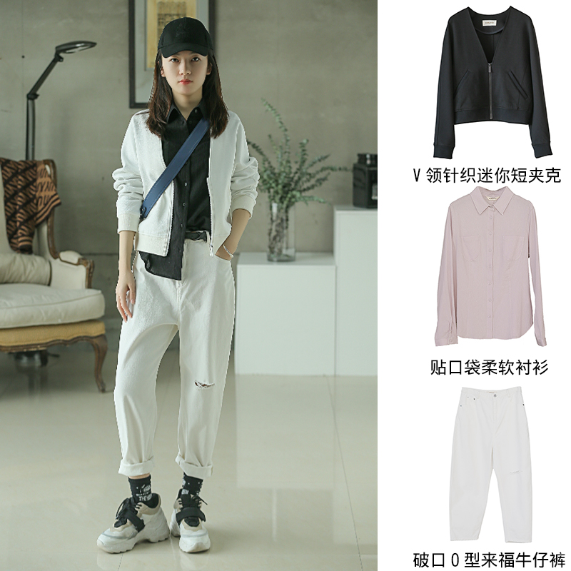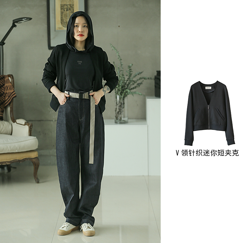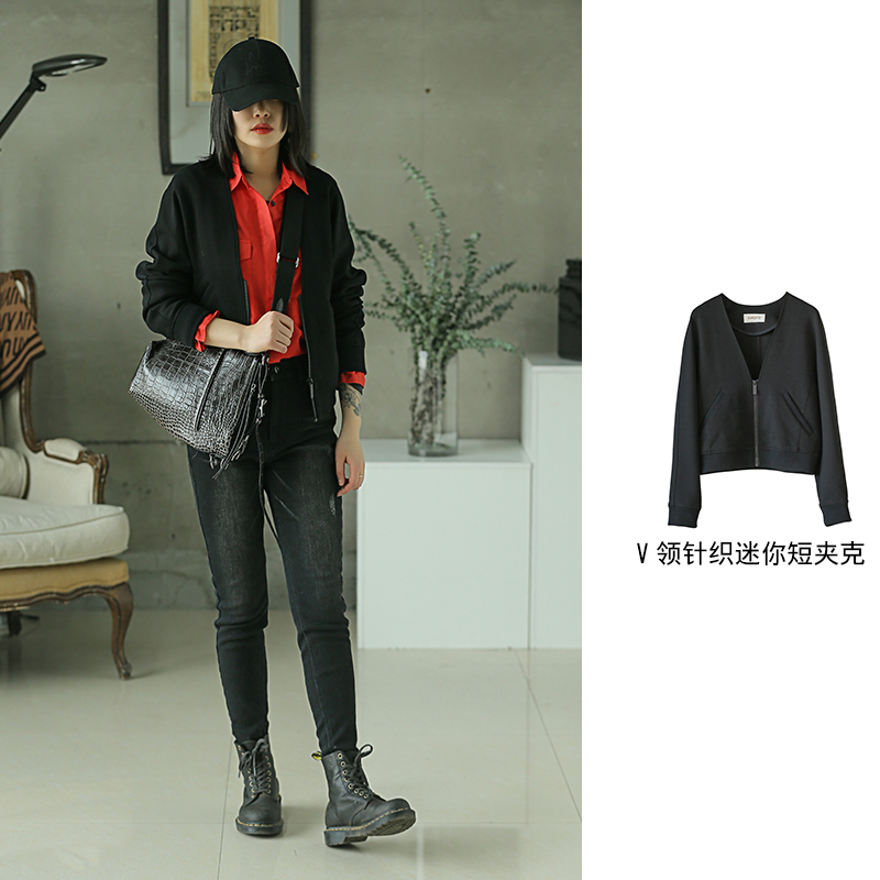 V领针织迷你短夹克211SY063