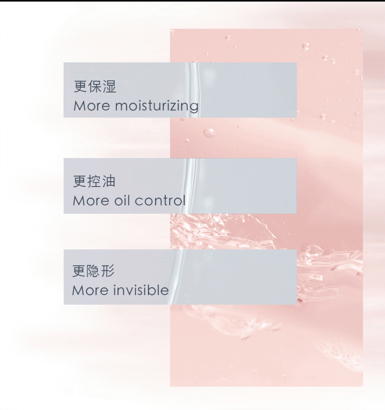 全新触感和质感x柔焦滤镜效果,均衡肤色,提亮水光感,给你前所未有的体验感。