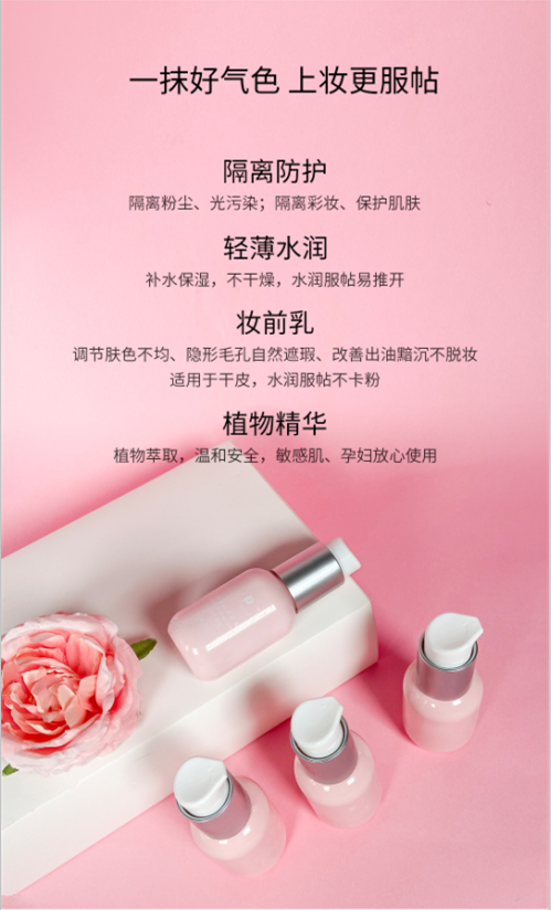 一般早上出门素颜没气色,涂一层玫瑰妆前润养霜就可以提亮肤色,方便又护肤,一步到位了,所以呢,买它一瓶=精华+遮瑕+妆前乳+隔离,这样一看,真的特别实惠了!