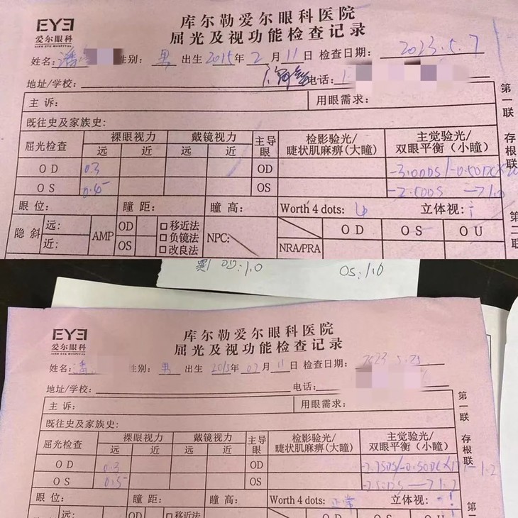 就这样过去了短短18天,孩子突然说“戴的是同一副眼镜,但似乎清晰了”,家长按捺不住赶紧去做了复查: