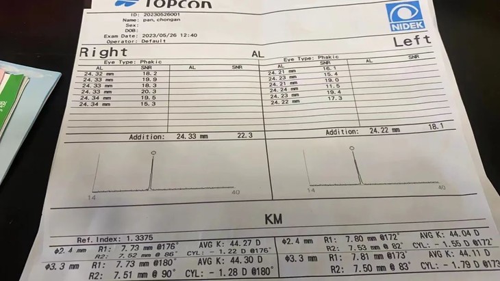 这个结果让家长难以置信,甚至兴奋得睡不着觉,怕是误差,第二天再去求证数据也差不多,还更好了:左眼眼轴24.21mm,右眼眼轴24.32mm。
