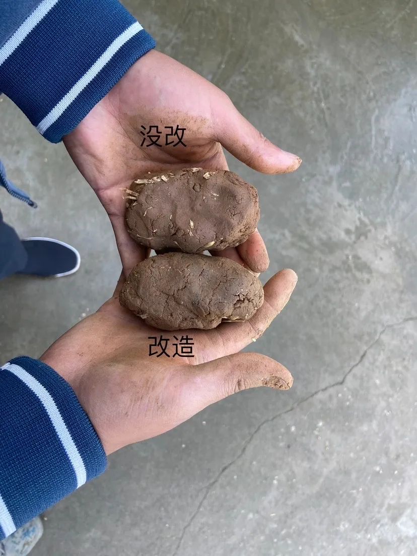 下午,我们去看了先品叔用羊粪改造的土壤,我抓了一把,和其他没改造的地,进行比较,发现改造后的土壤颜色偏浅一点,从土壤颜色来看,应该是起作用了,不过具体数据,还得交由专业的检测机构。