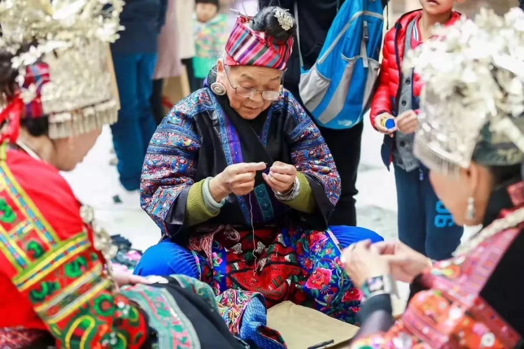 每一次深山集市,我们都会看到苗族阿妈坐在集市的一隅安静的绣着花。可能有人会说这是为了吸引客流所做的行为艺术,但这其实是把深山绣娘日常生活展现在都市的真实搬运。潘奶奶曾经说过,她所有不用劳作的时间都用来绣了花,走到哪,便绣到哪……