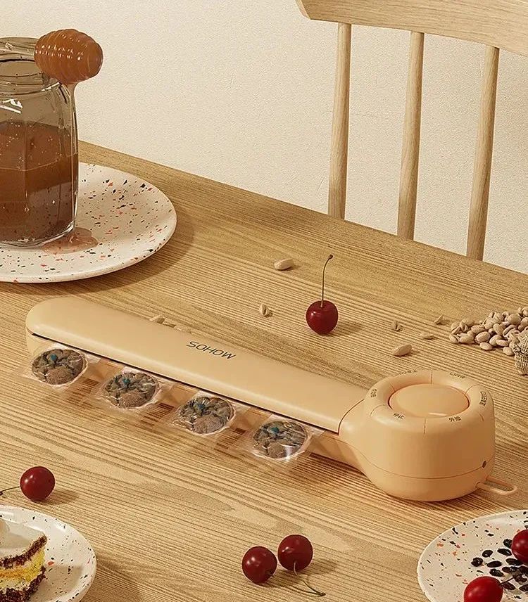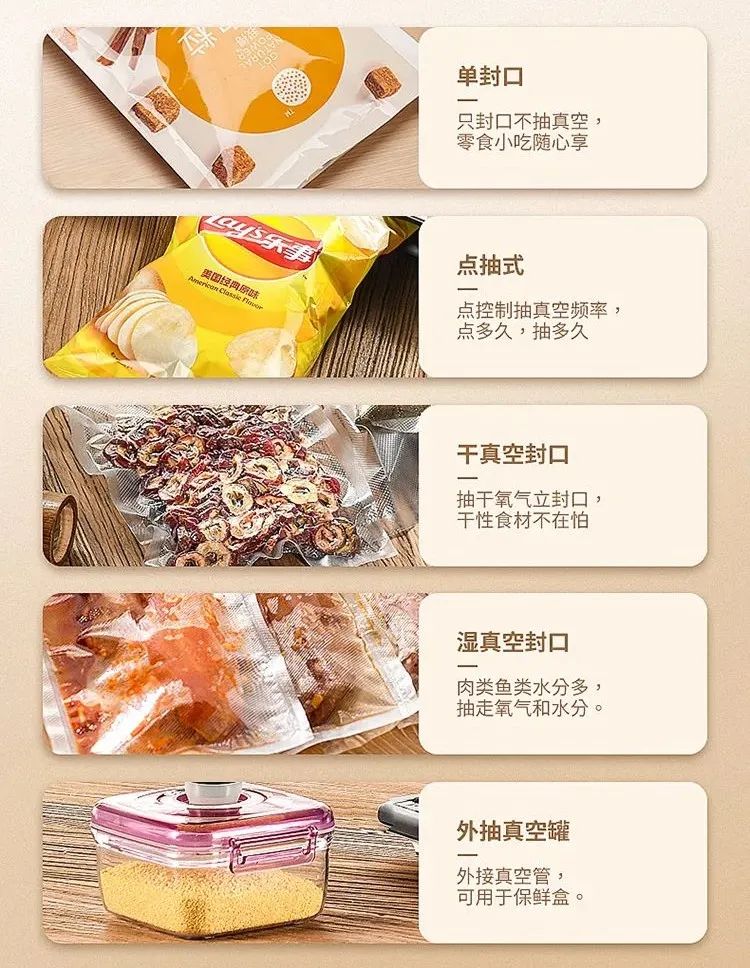有了这款真空机,就可以将食物分类封存,吃一次拆一包,再也不用担心食物变质了。