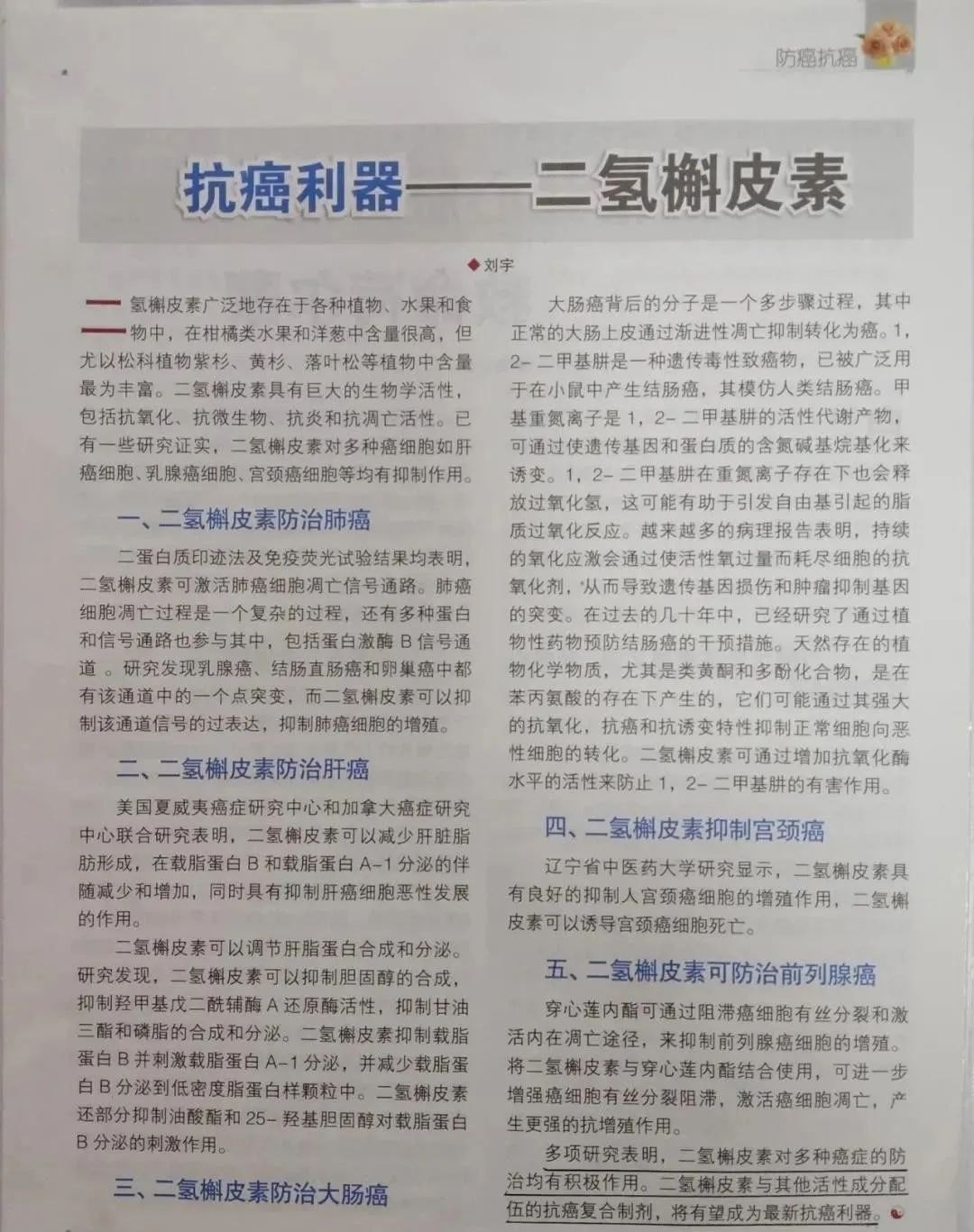 多项研究表明,二氢槲皮素在癌症防治方面具有显著潜力: