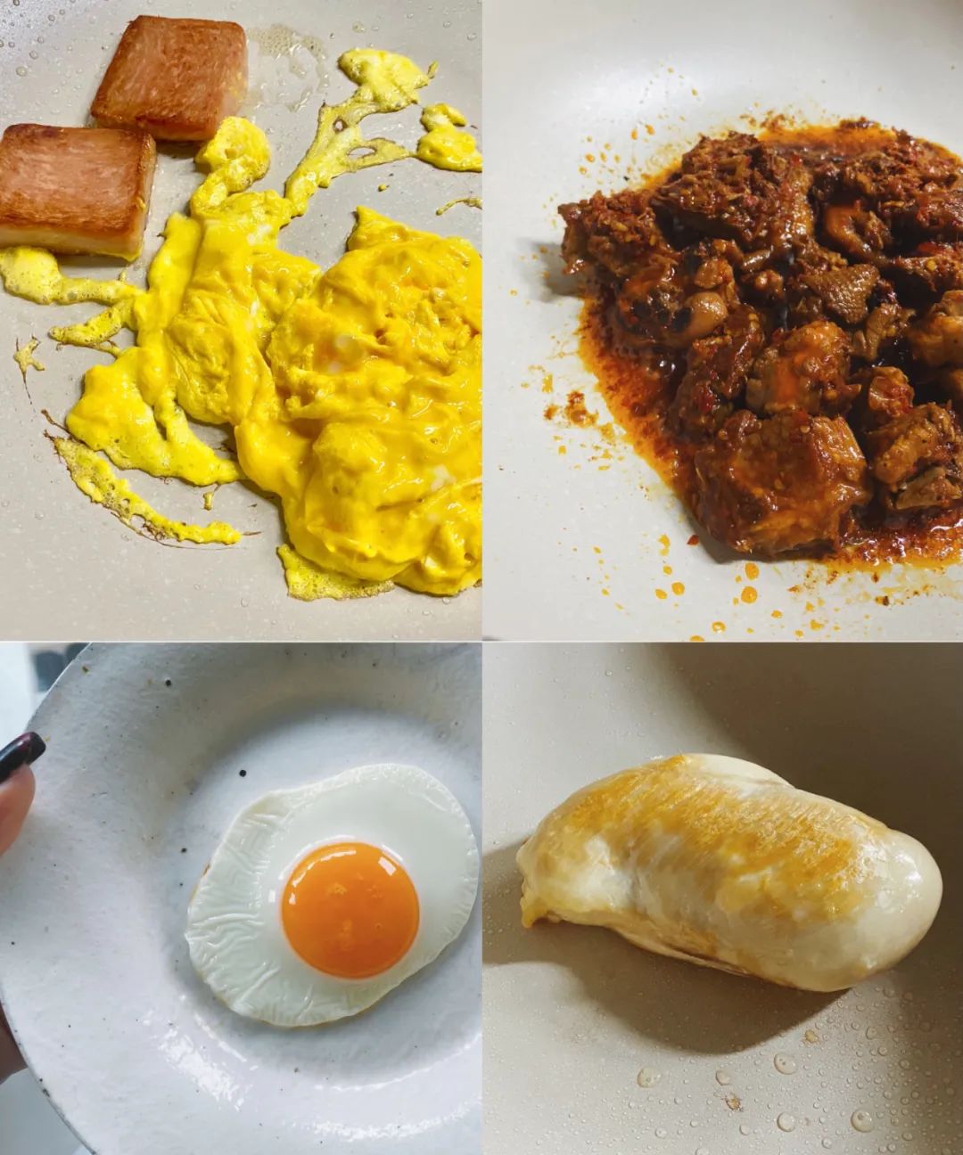 锅底也特别平和大,蛋打下去不容易变形,厨房小白也能煎出美丽太阳蛋,底部还做了加厚,导热又快又均匀,只要十分钟能搞定我早餐。