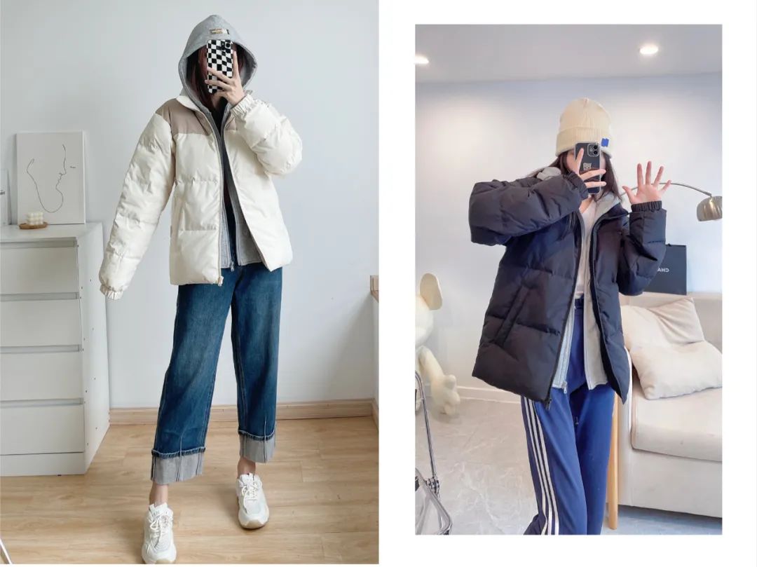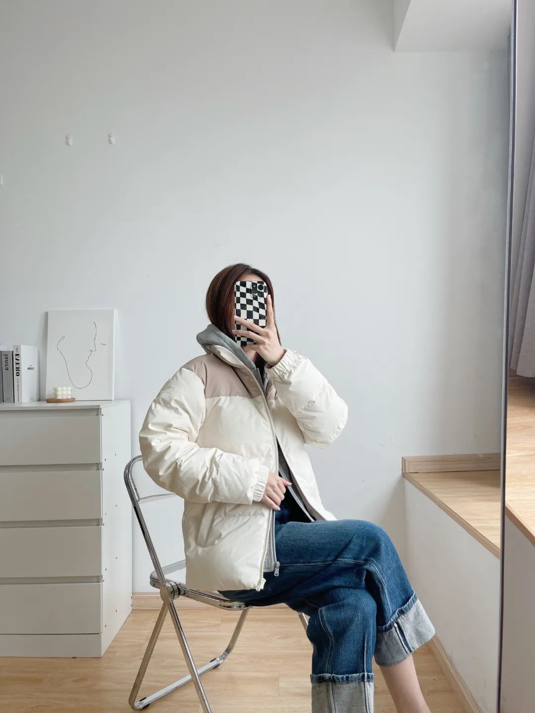 👆短款很适合小个子,153的佳欣上身刚好遮住pp,不压身高,显腿长。想要更暖和还可以选长款,反正丰俭由人。