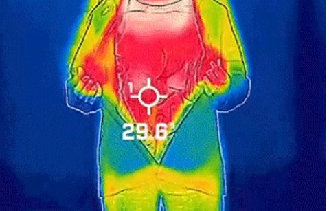 我们做的风洞测试,软壳衣包裹住的体温,稳如老狗,红外热成像显示体温毫无波动