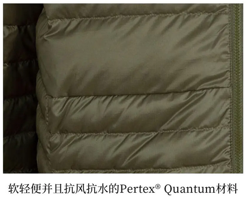 3、Pertex Quantum 防泼水面料,轻量防风保暖,可压缩!
