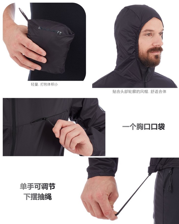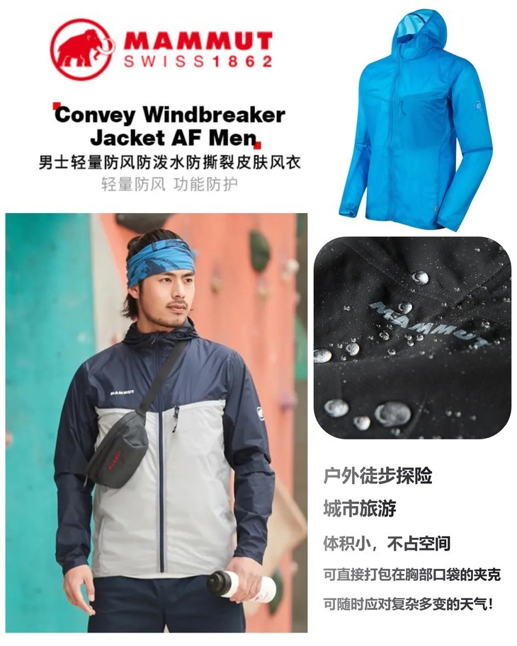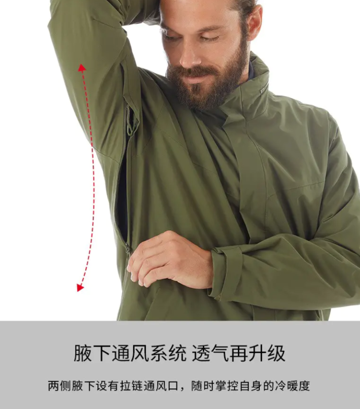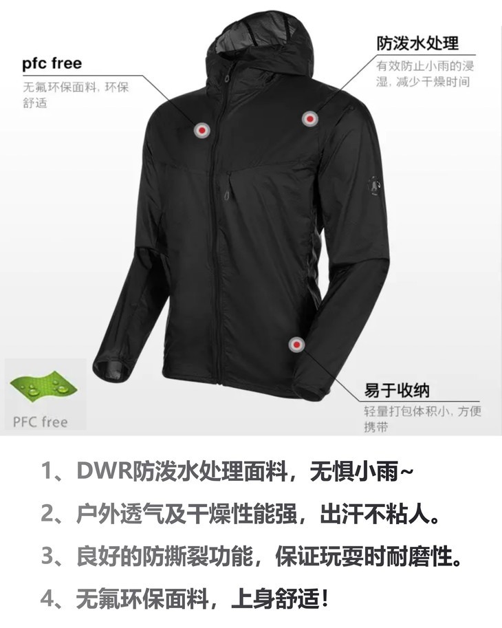 2、夹克采用3层Mammut DRY-technology Pro材料,牢固可靠,非常耐用,透气,运动出汗后不粘皮肤,迅速干燥,可使您保持舒适干爽。