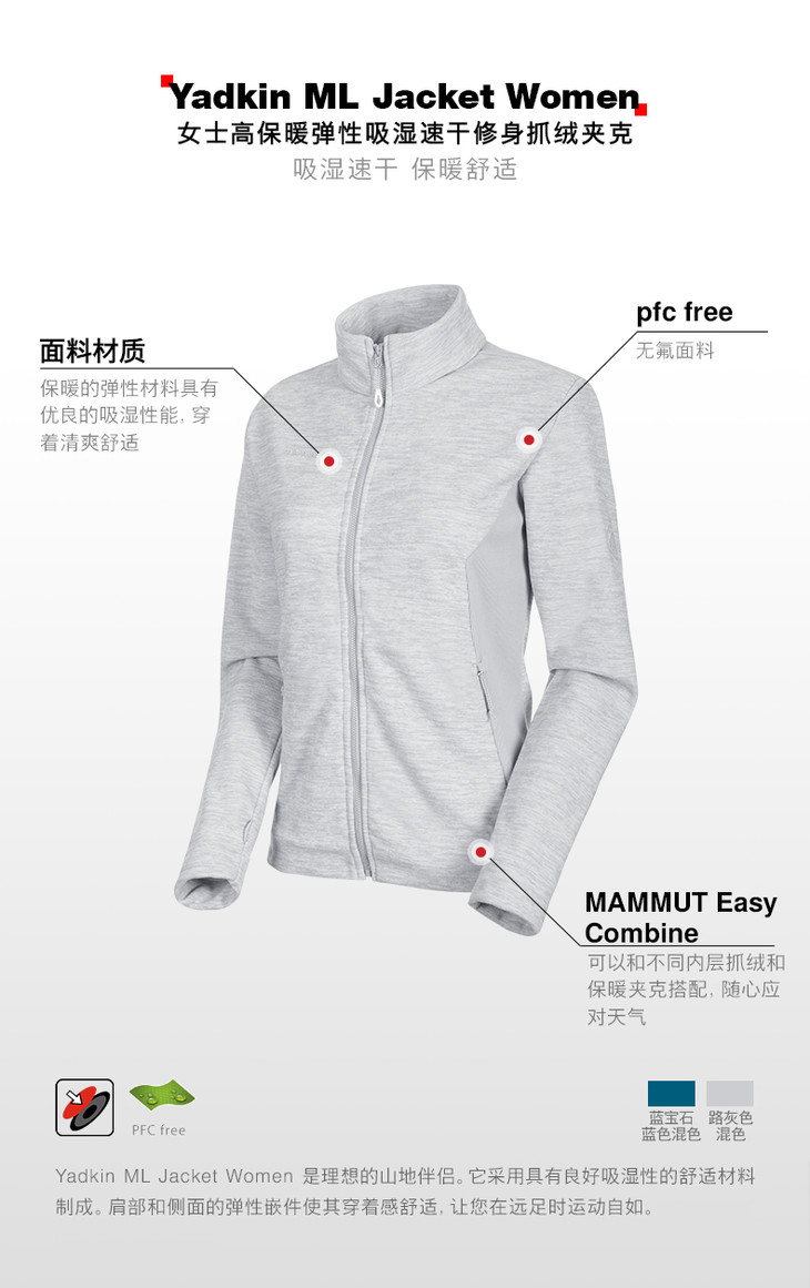 【 猛犸象 Yadkin ML 女士抓绒立领夹克 】