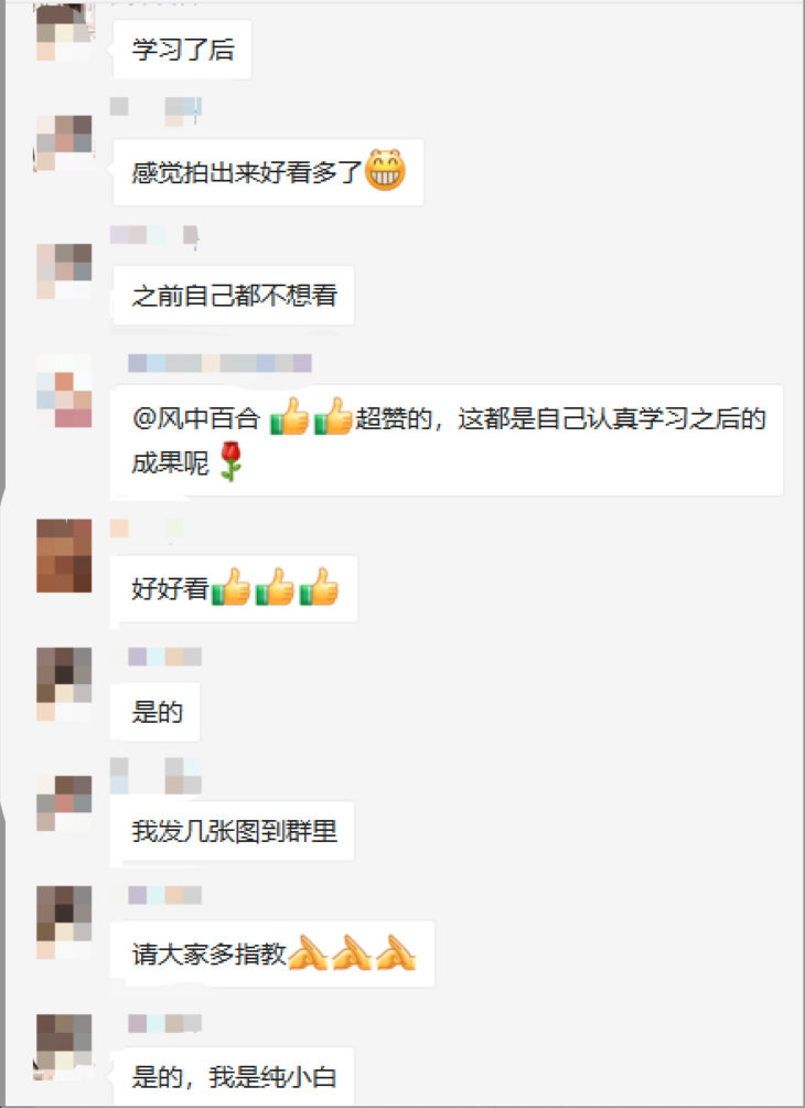 在这里学习手机摄影的都是和您一样零基础的同龄人,大家互相鼓励、交流分享,在学习的过程中,不仅培养了兴趣爱好,愉悦身心,还能结交新的朋友,这样的课程你不想尝试吗?