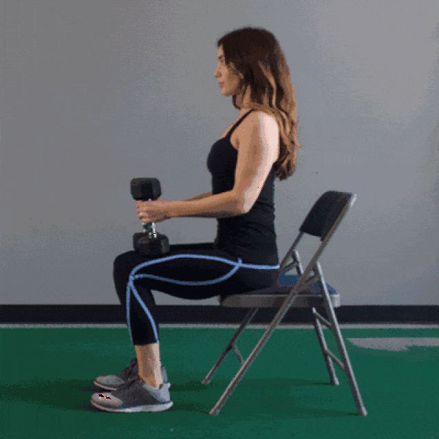 动作要领:坐于凳子上,前脚掌踩在垫木上,脚后跟悬空。双手可持哑铃置于膝盖上方,踮起脚后跟至最高点,顶峰收缩1秒,缓慢下放。