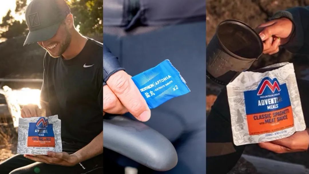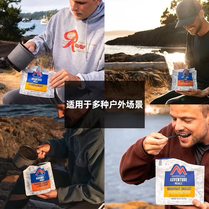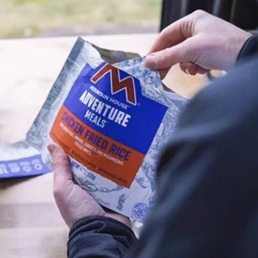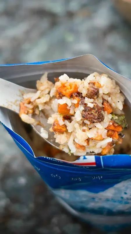 (上图为美国品牌“山屋”即食预制菜,国内品牌可选“山之厨”。撕开包装袋口,注入沸水,搅拌,封紧封条,闷一刻钟。再次打开,即可食用。相比在户外自己带食物材料会方便许多,搭配也更为合理,蔬菜、蛋白质都能足够摄取。纯分享无广告)