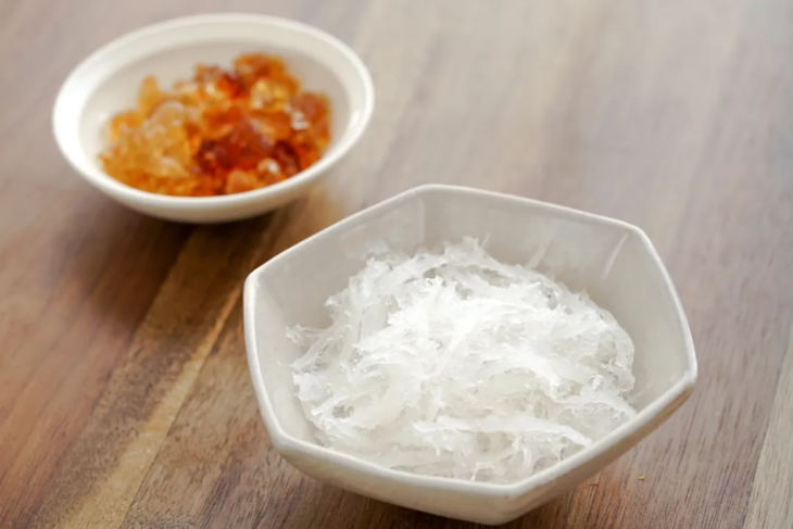 同样,桃胶提前泡发12小时,去除杂质清洗干净,加入没过桃胶的水炖煮30分钟备用;