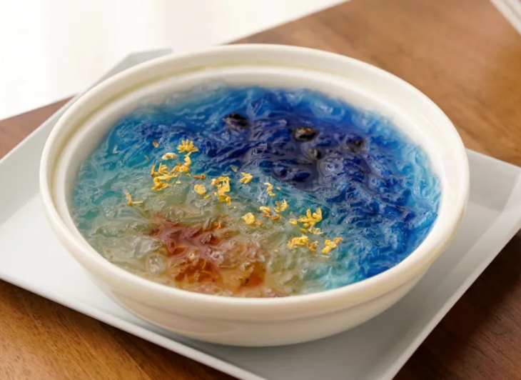 静待花青素色彩的蔓延,一碗集颜值、营养于一身的星空燕窝饮,便大功告成啦!