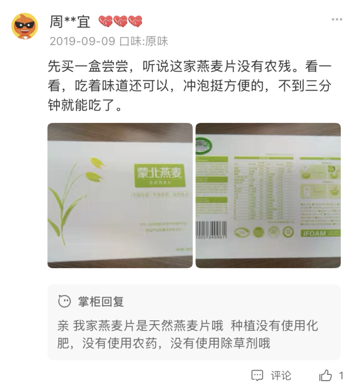 中国全天然全产业链燕麦品牌,拥有11万亩内蒙雪原燕麦种植基地,零农药零化肥自然生长,是农业产业化重点龙头企业,(IFOAM)国际有机农业运动联盟成员。