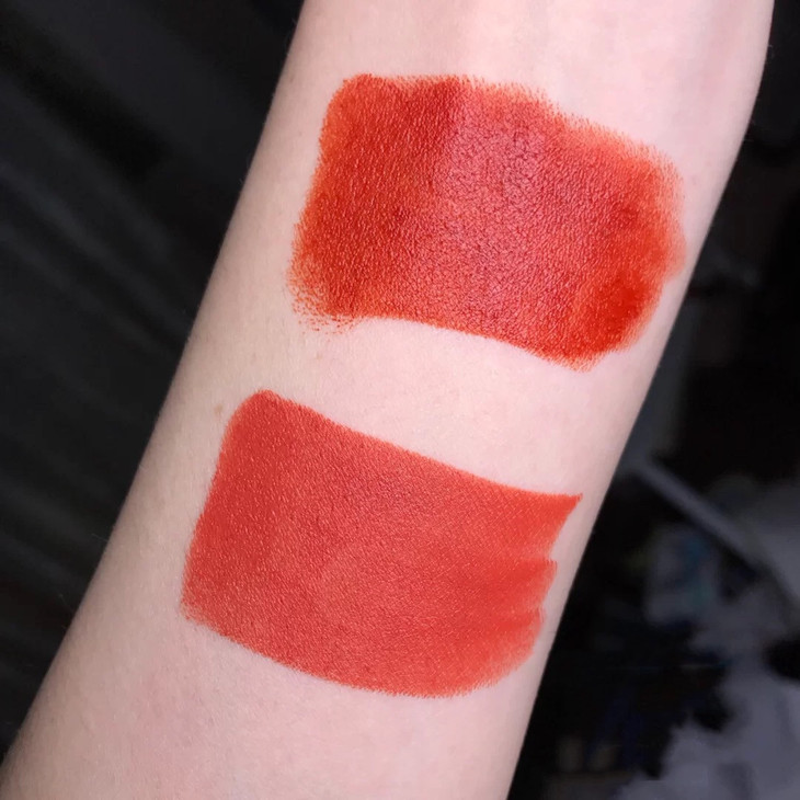 也是一个橘色调的口红,但是他更多的是脏橘色,橘色味儿没有那么浓,带了一点点的粉