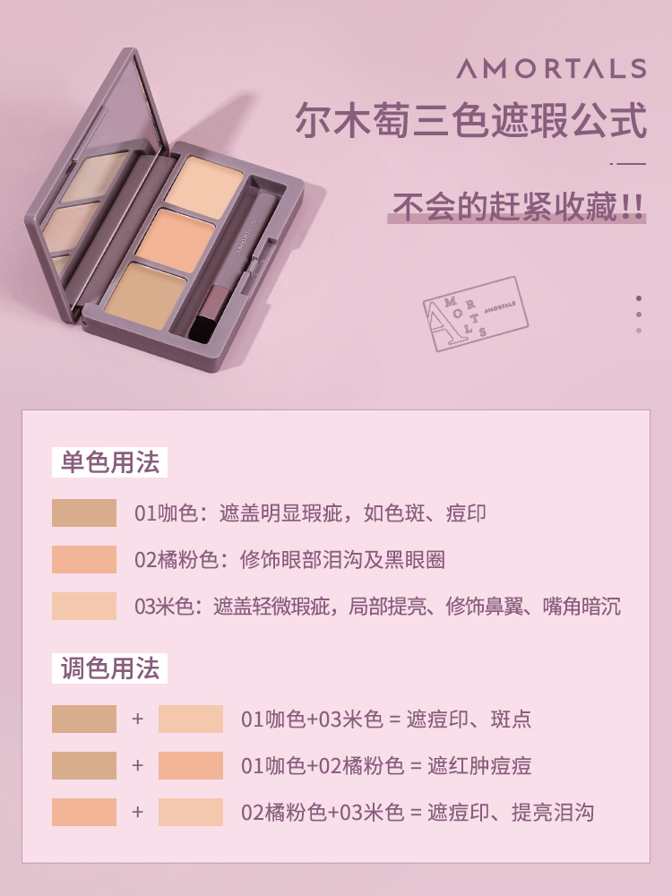 今天小萄就给大家整理了三色遮瑕的调色公式~