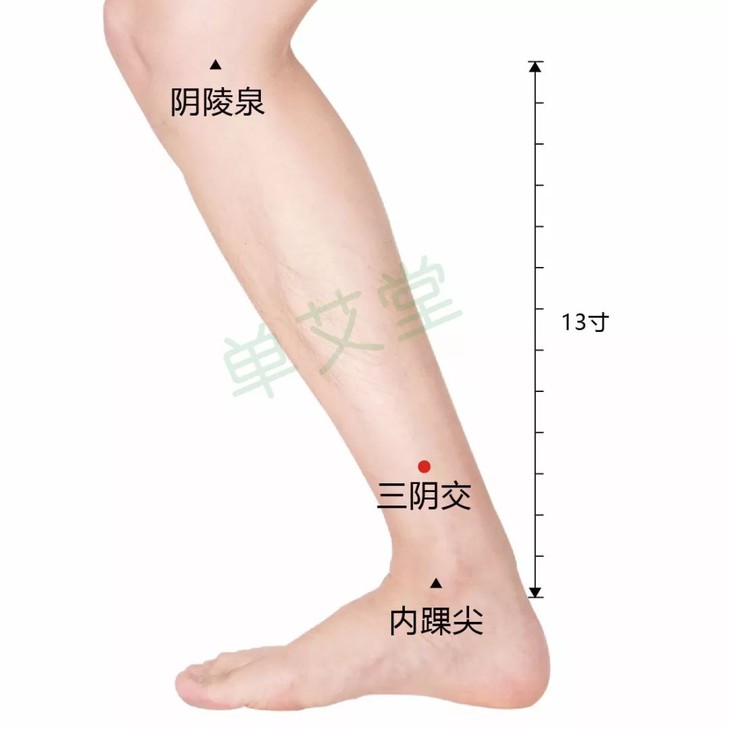 位置:内踝尖上3寸,胫骨内侧面后缘。