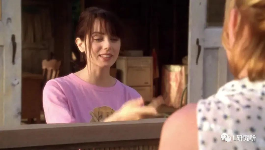 虽然只是变换了一个发型,但这个行为在这个时刻成就了人物弧光,在后面的剧情中,珍妮跟男性相处时,再也没有了以往的那种讨好感——以前她总是摆出迷人的微笑,展示性感,散发性吸引力。而现在她不再以“女性的姿态”跟男性相处,她只是冷冷的坐在一旁,定定的观察对方,以一种势均力敌的气场跟男性对话。
