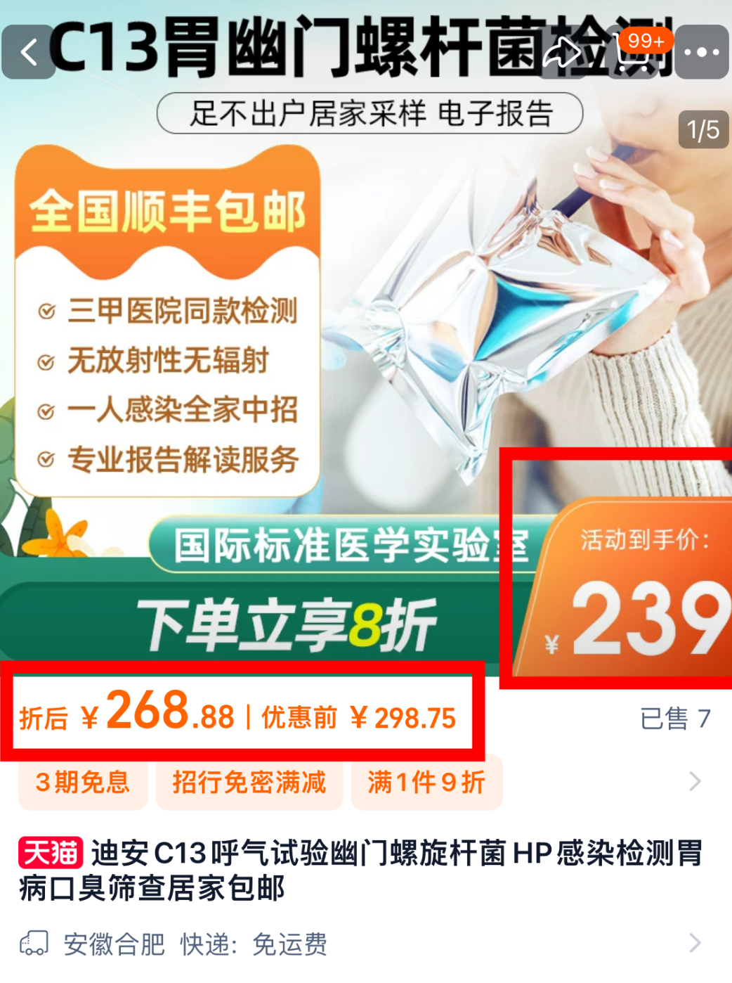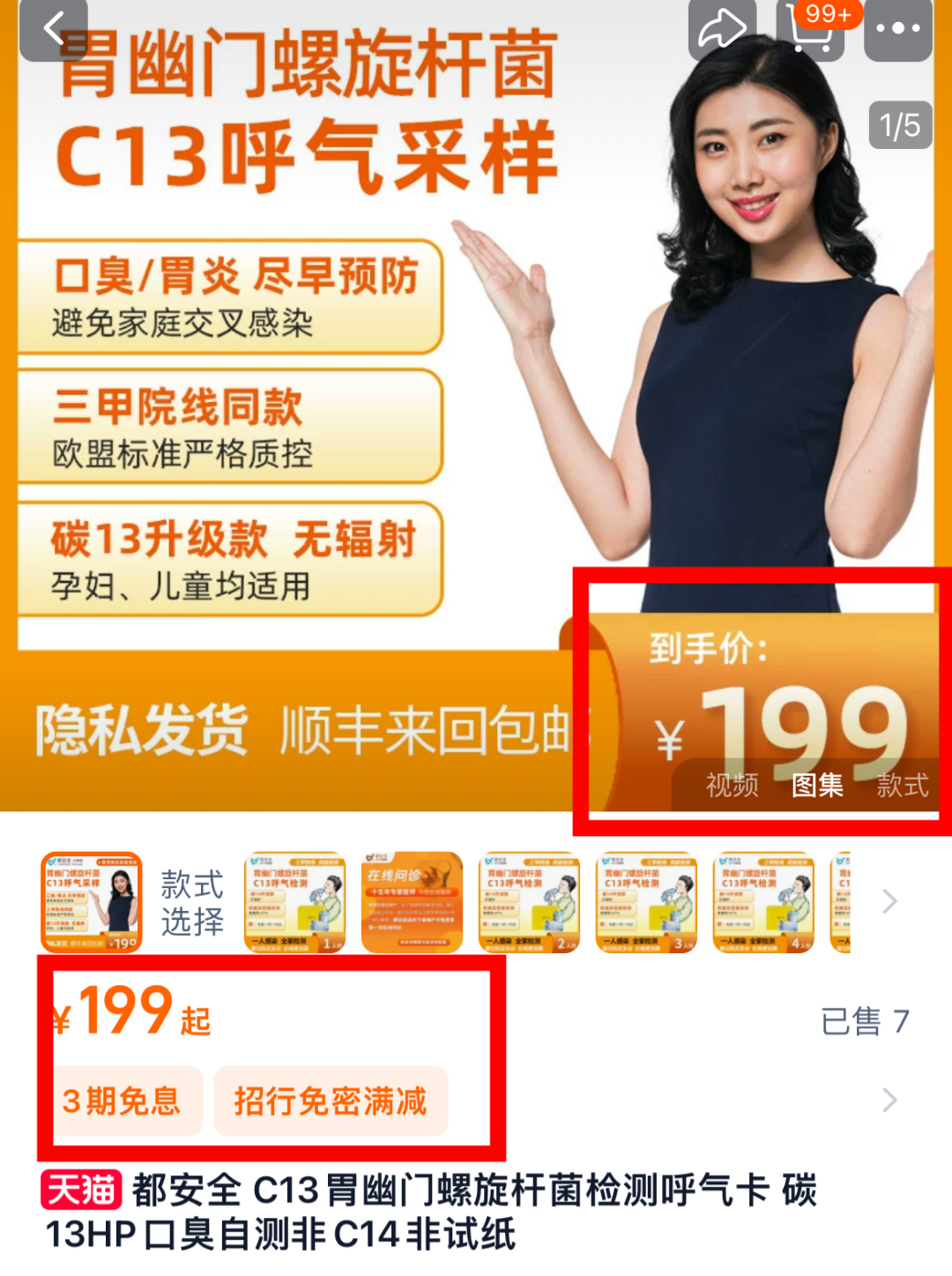 市面上这种C13胃幽门螺旋杆菌居家呼气检测,一次都要200左右!