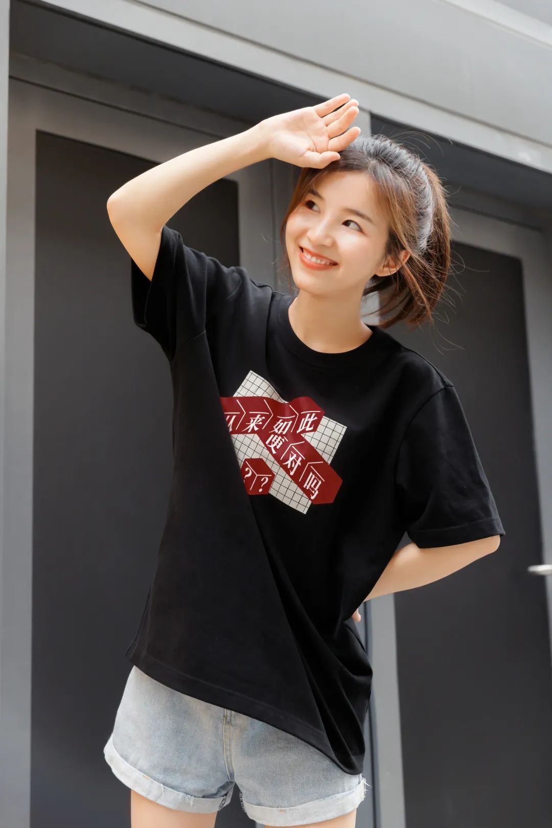 不管是牛仔裤、工装裤、运动裤,还是短裙、半身裙、背带裙……随便哪一种下装,这款T恤都能够轻松hold住。除了这些,它和你的各类时尚单品也很搭哦!