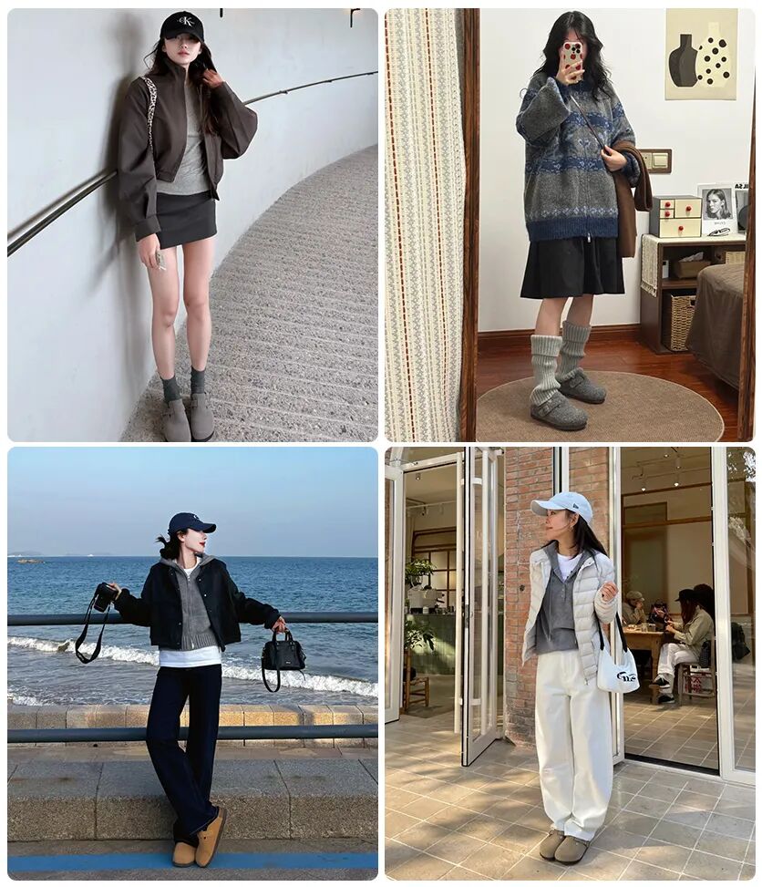 虽然是经典的圆头鞋头,但一点都没有普通雪地靴那种很厚和笨重的感觉。