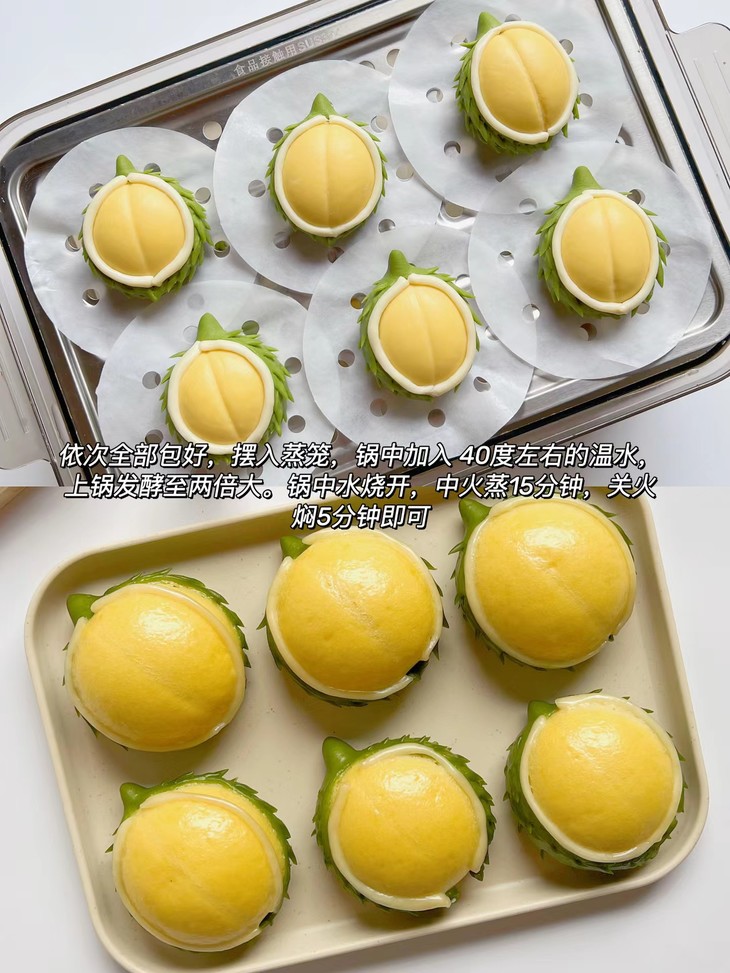 香甜的榴莲馅加上榴莲的造型,蓬松暄软又好消化😋
