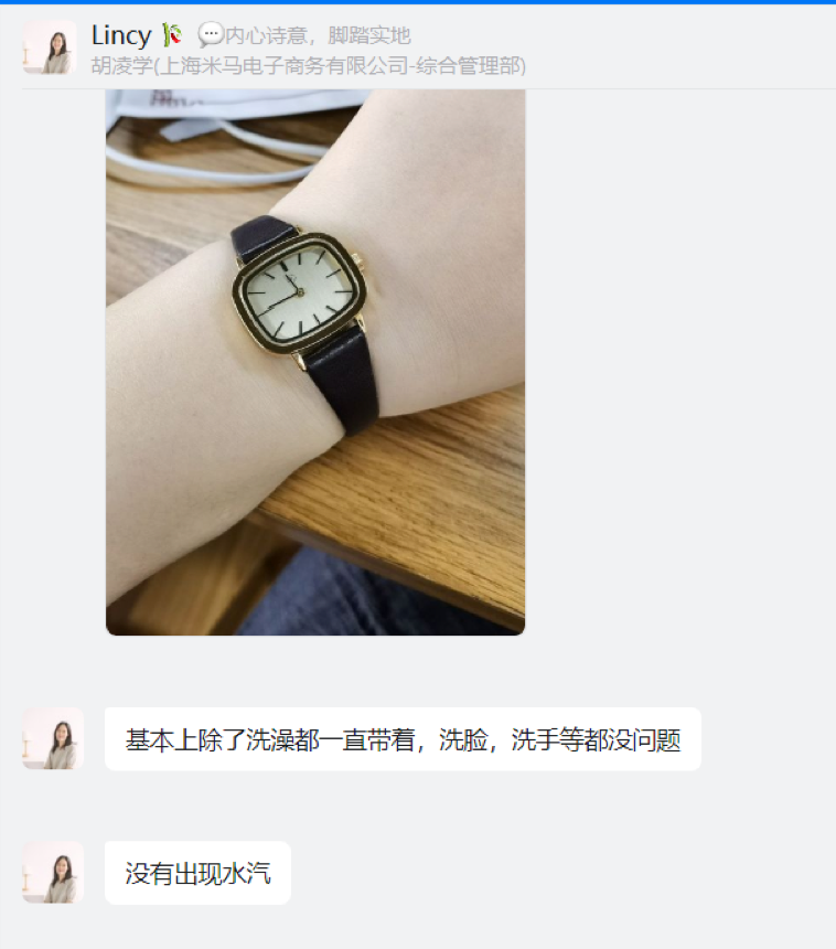 同时也不能将手表放在热水中浸泡,否则容易造成手表发生故障,从而造成损坏的现象。所以除了洗澡都能带。一下是姐姐给我的反馈,同学们可以参考下~