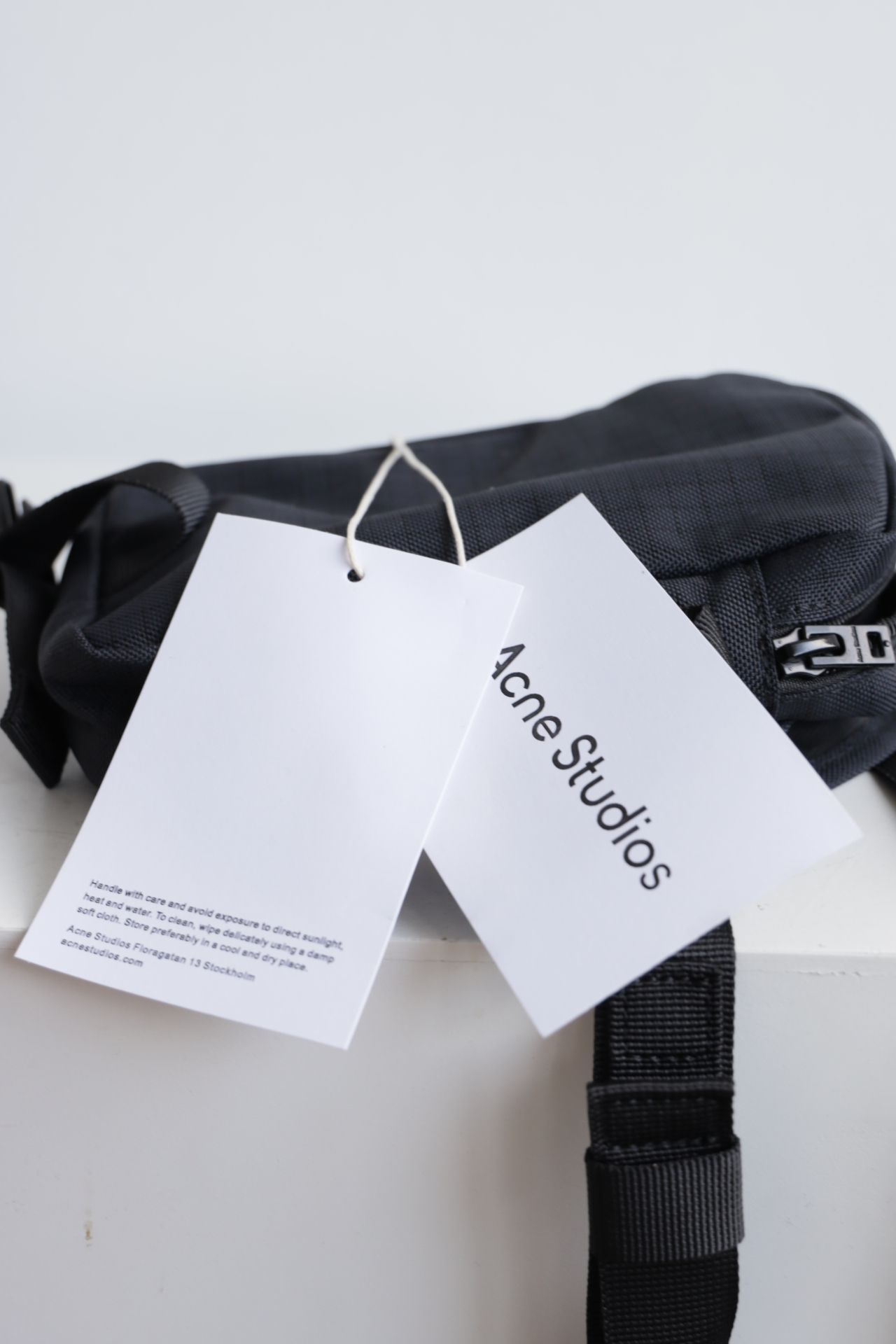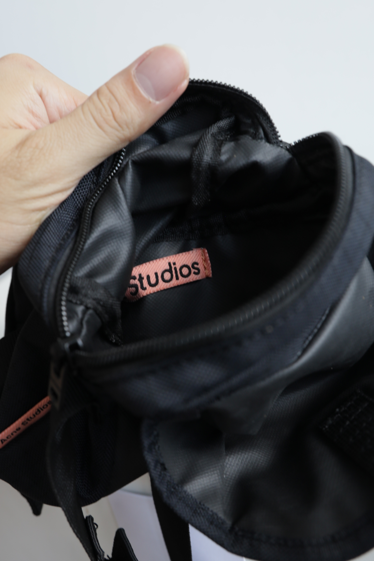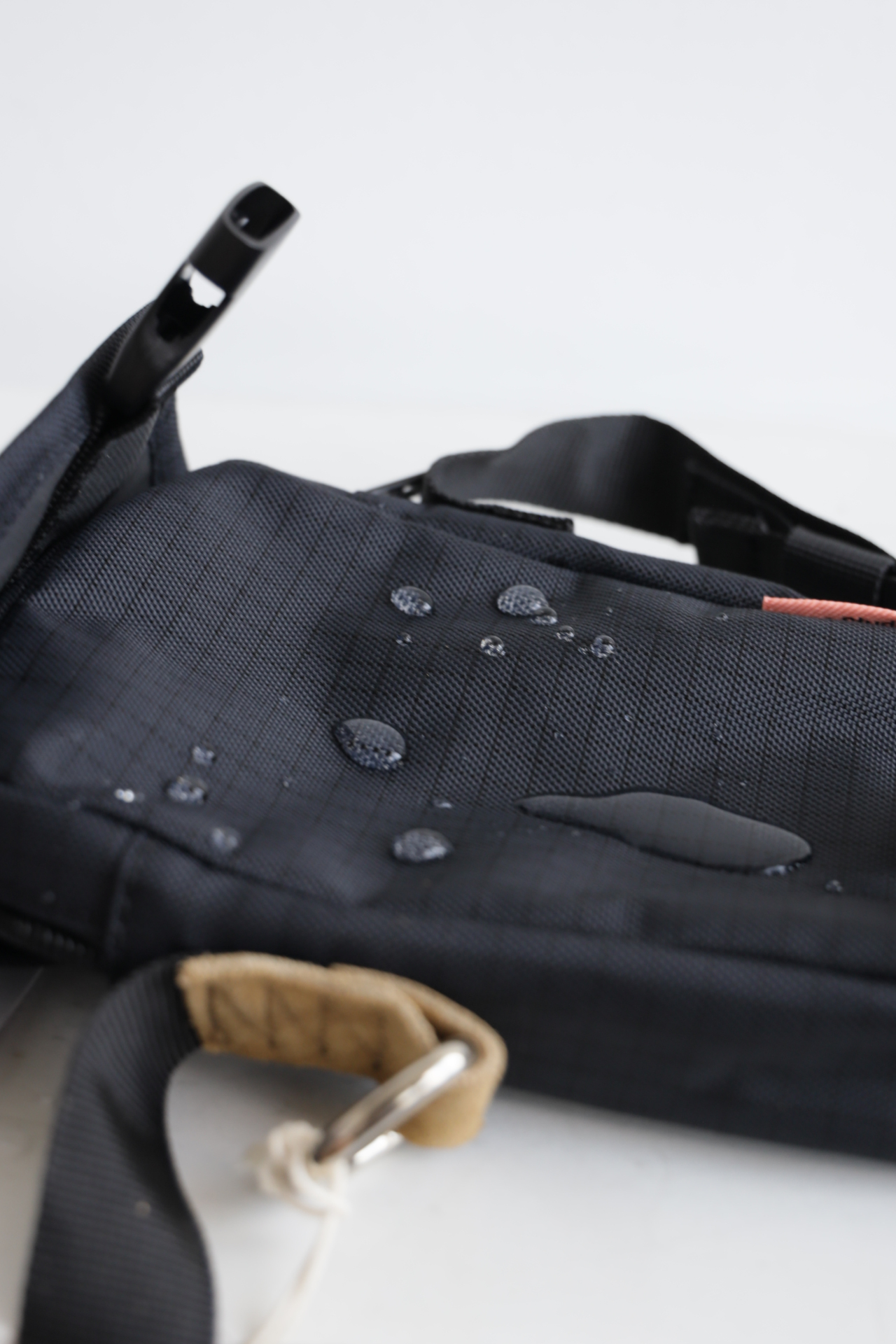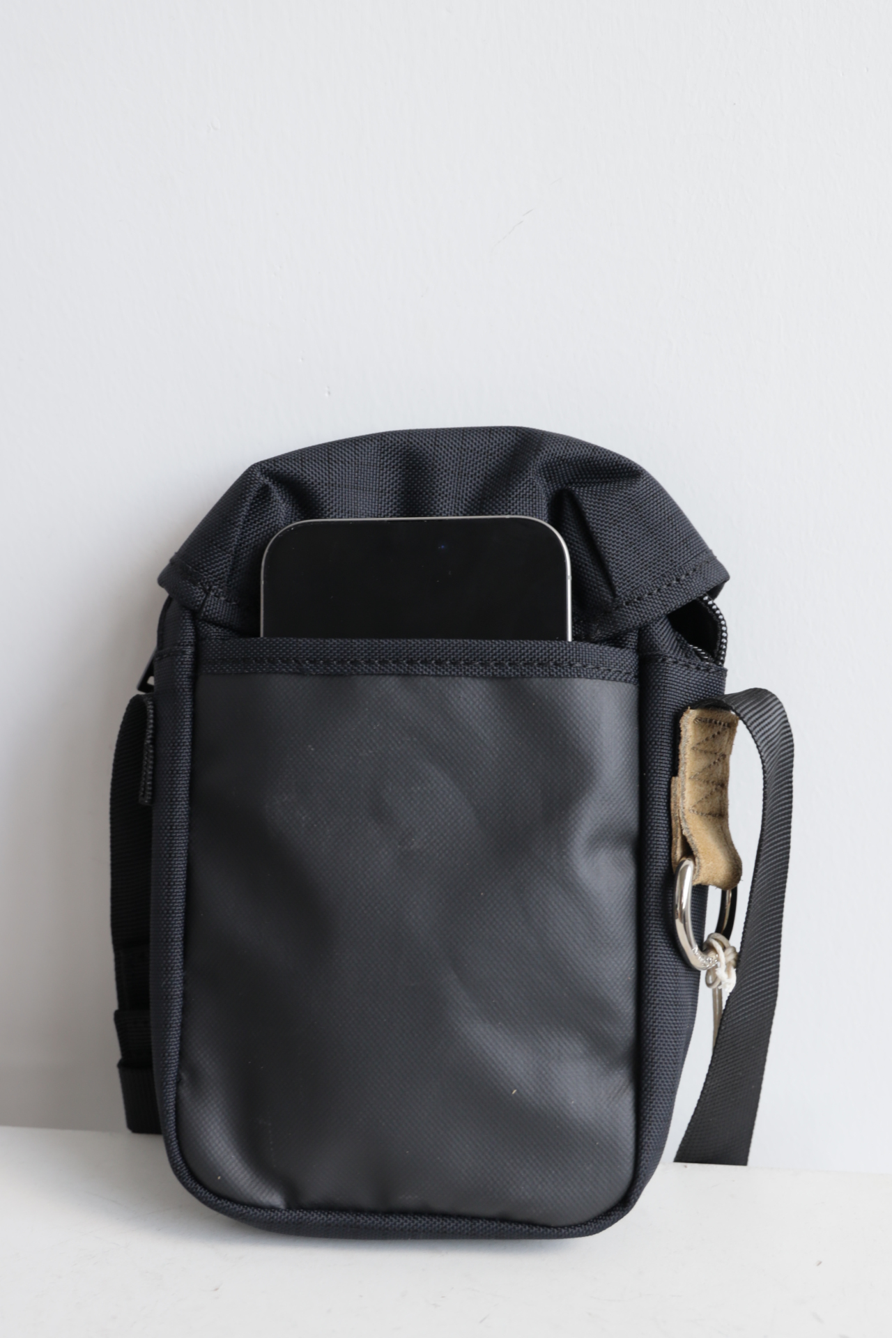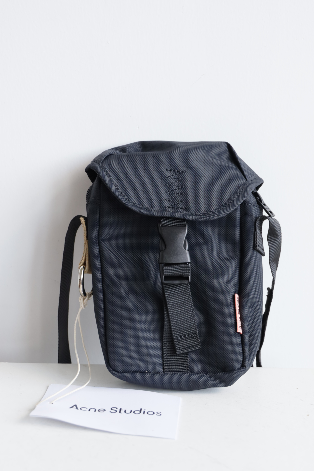 此款迷你包袋选用防撕裂锦纶面料制成,饰有品牌徽标图案。配有可调节斜挎肩带。
