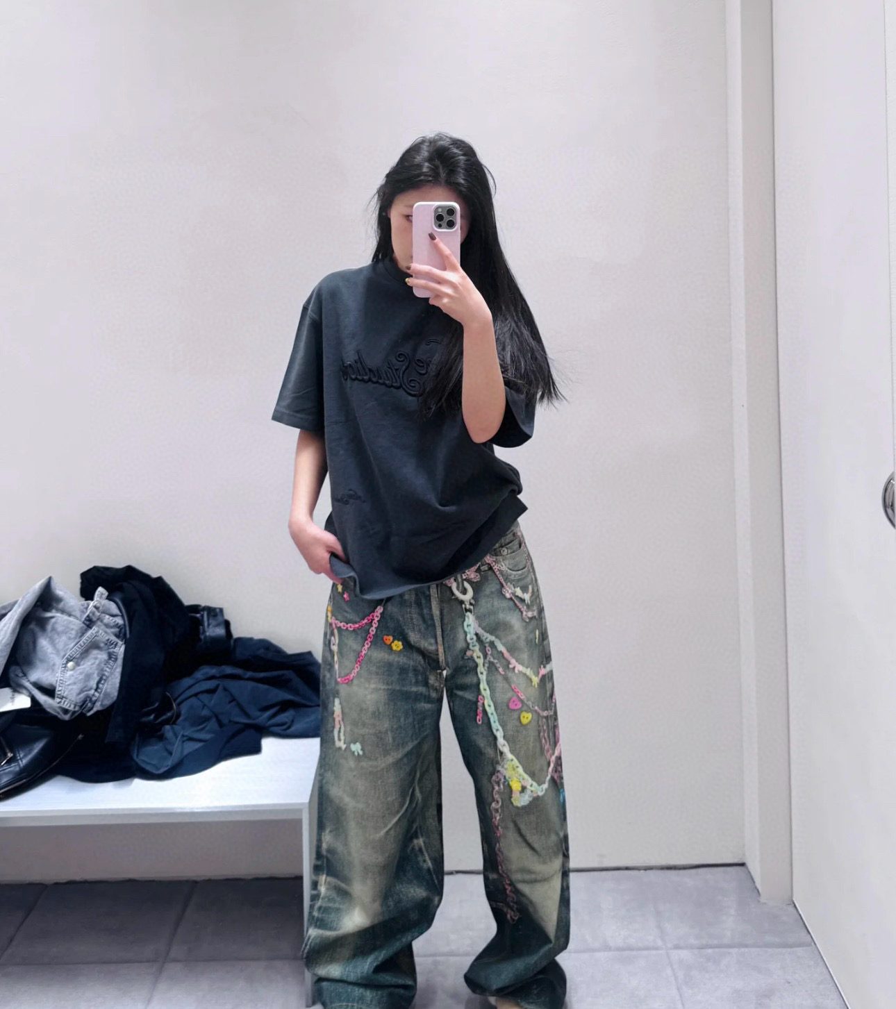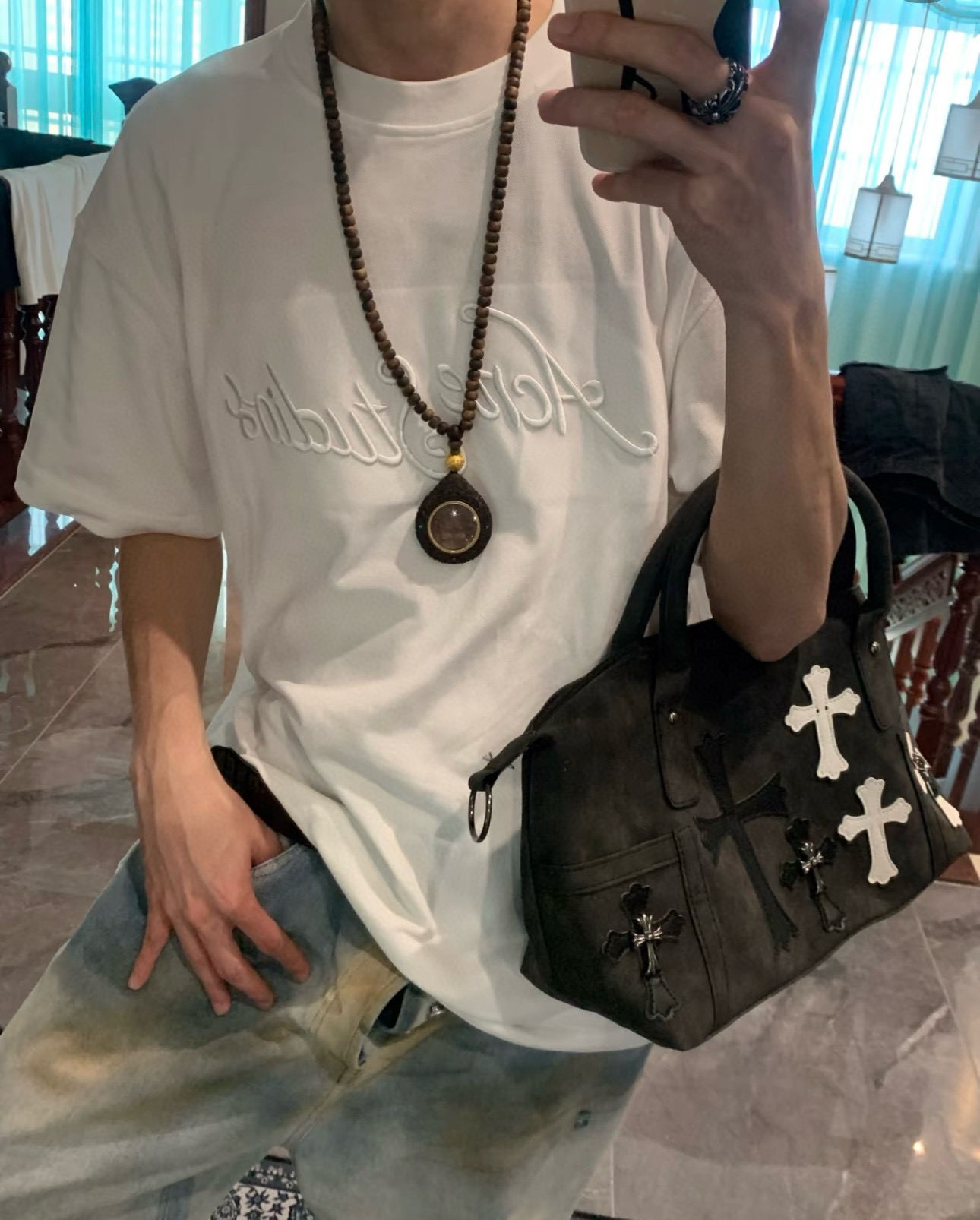 刺绣款!A.Stud1os SS25 宽松廓形休闲短袖T恤
