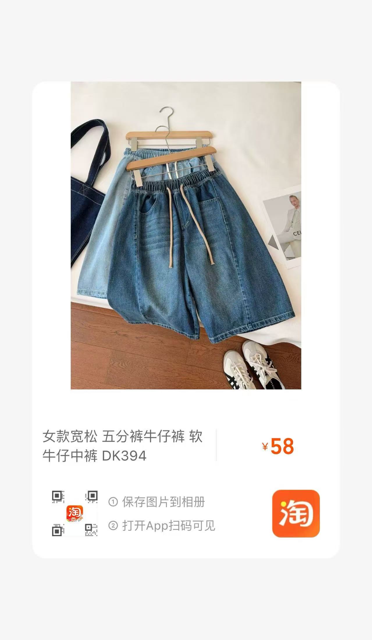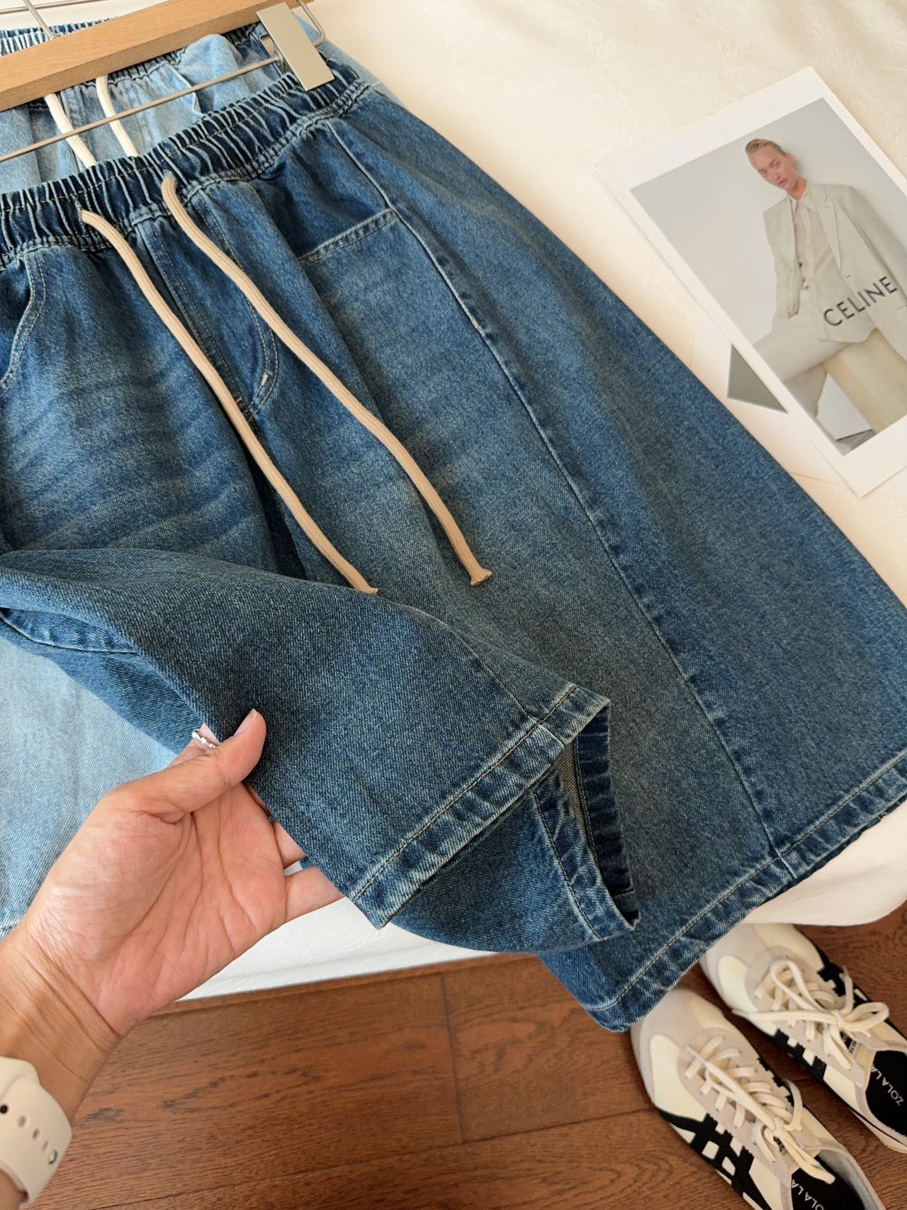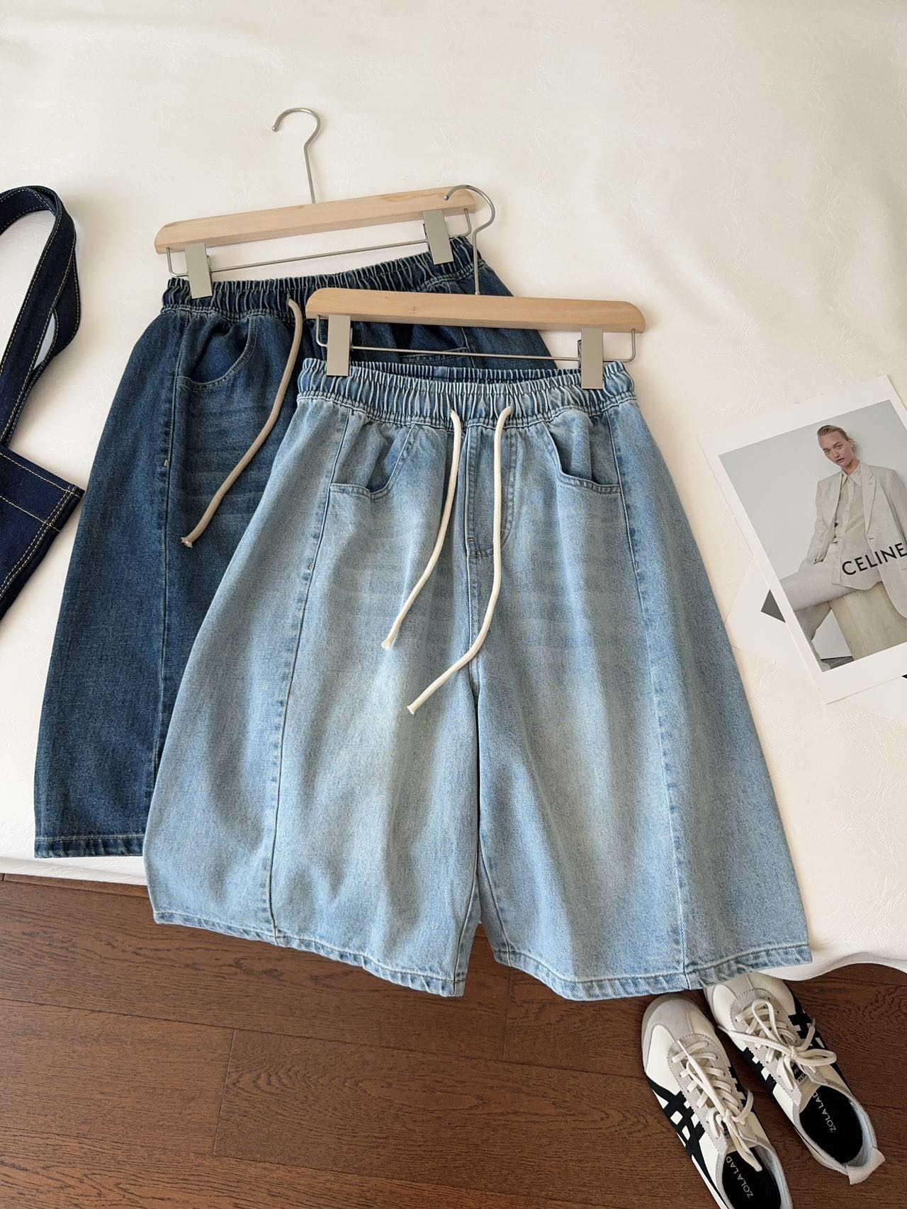 女款宽松 五分裤牛仔裤 软牛仔中裤