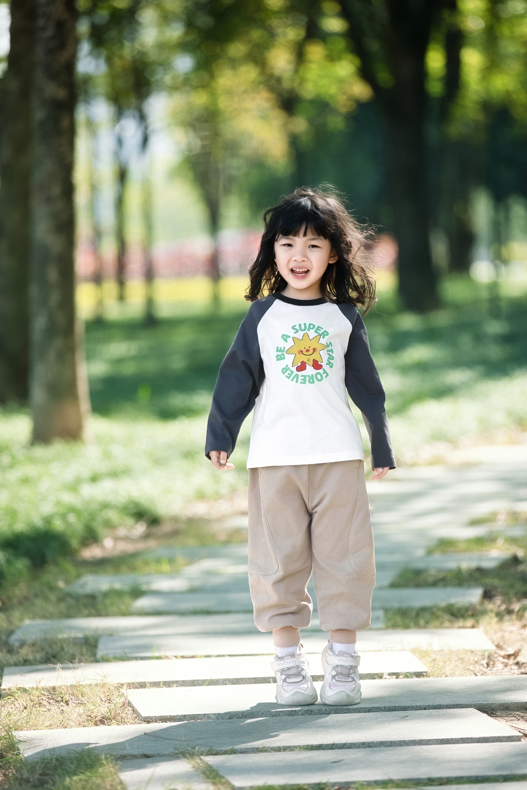 ✅ 宽松插肩袖,活动自如,爬高跑跳都不怕