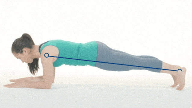 1、 双手撑地,间距略宽于肩,手指向前,双脚并拢,脚尖着地,收紧腹部,使身体从头到脚呈一条直线。