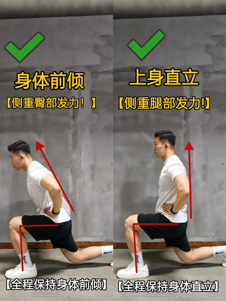 ●前侧膝盖不要超过脚尖,后侧膝盖尽量垂直于地面,避免关节压力过大。