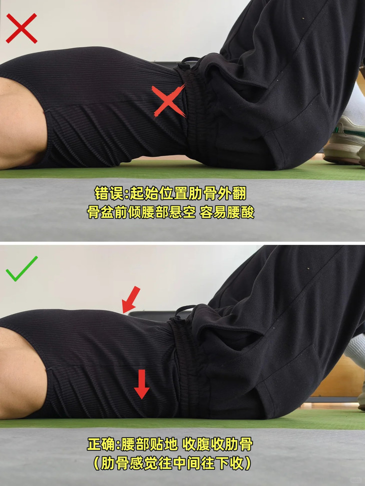 ●动作过程中,要避免腰部离开地面,否则会使腰部承受过多压力,引发腰部疼痛。