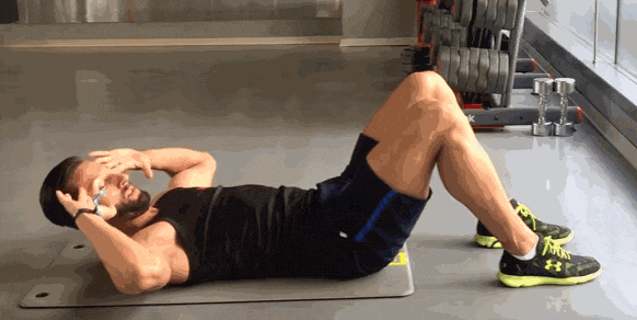 2、收紧腹部肌肉,利用腹部力量将上半身缓慢抬起,使肩膀离开地面,注意不要用手臂发力拉动头部。
