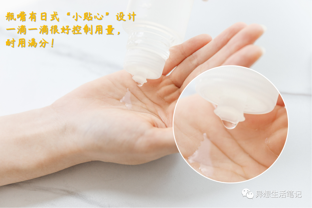 它流动性还不错,一个指甲盖的量涂全脸+脖子完全够,跟洁面和精华水一样用量省。