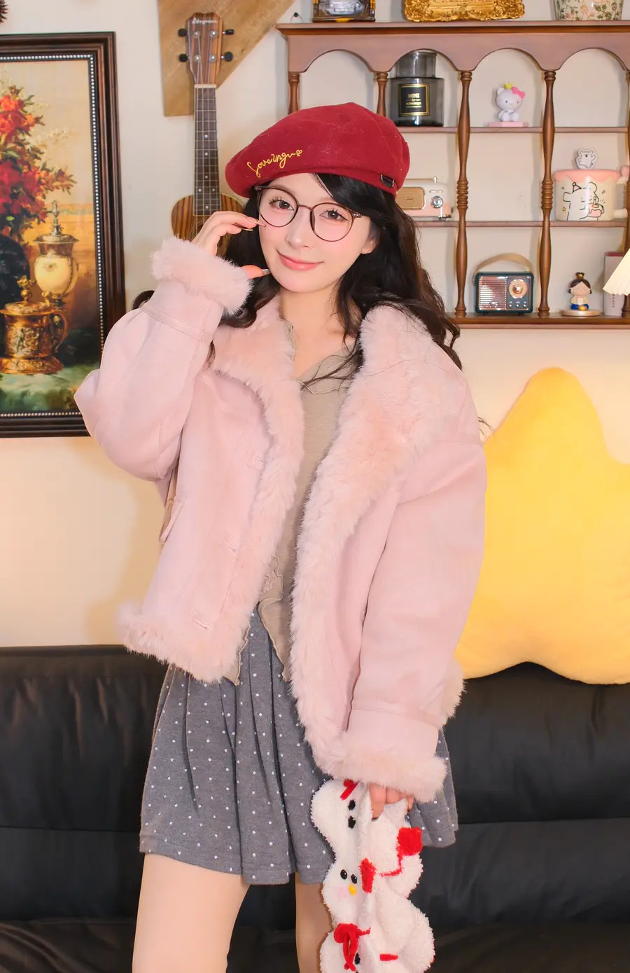 羊羔毛巨保暖,粉色温柔显白,真的很甜很元气~
