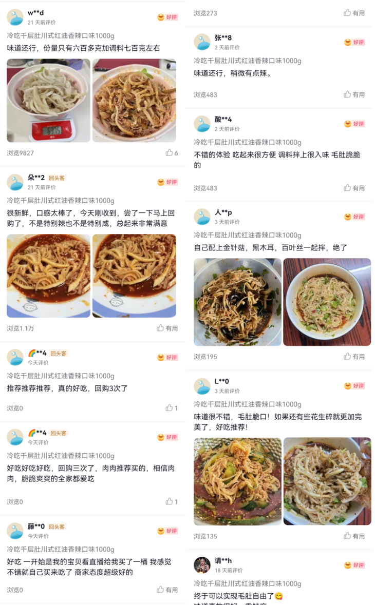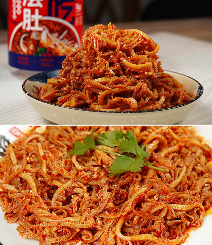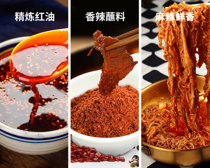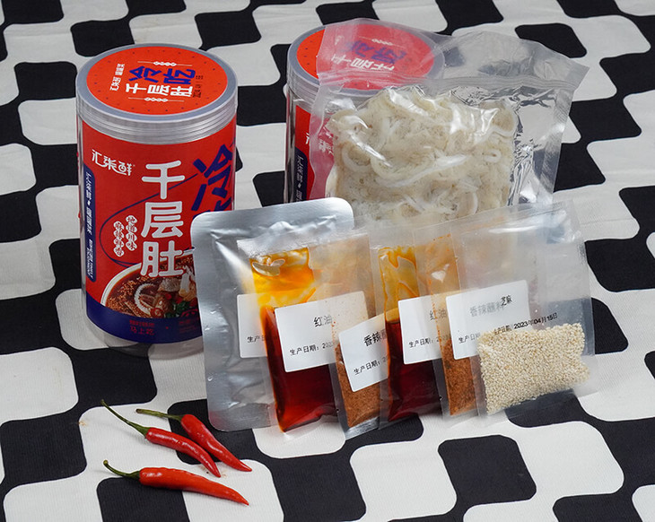 👍为了使千层肚更加鲜香诱人,我们在配料上下足了功夫,精选产地优质辣椒,经人工挑选色泽红润,保证个头饱满,再根据辣椒自身特性,经数次调配,严格配比,制作出新式川味冷吃千层肚;使干层肚呈现够脆爽、够香味十足、不辣口的特点。