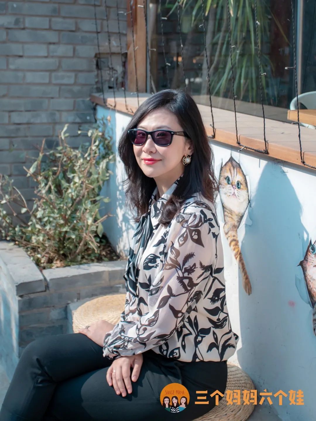 啾啾妈更喜欢蓝色星星和黑色星星,她穿着时髦又高级,逛街都像在度假。