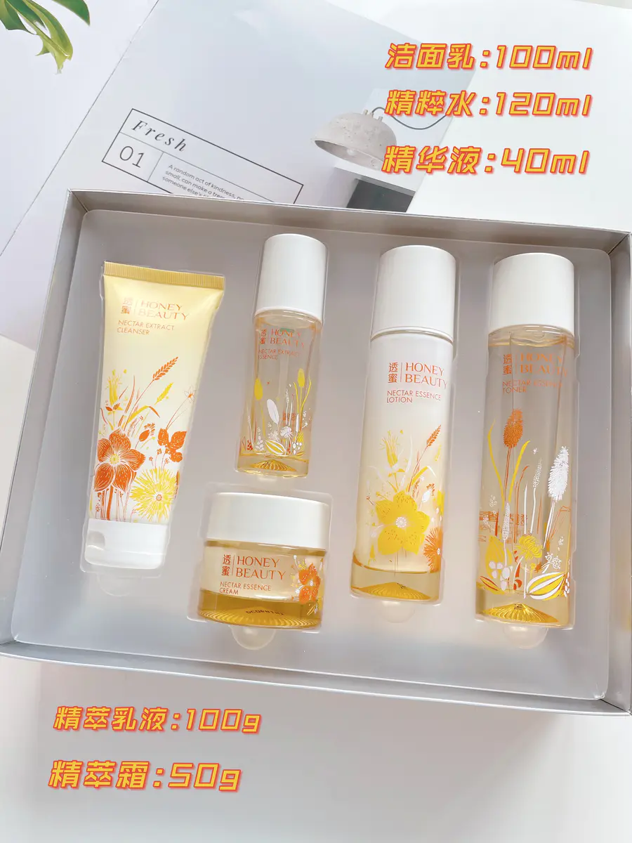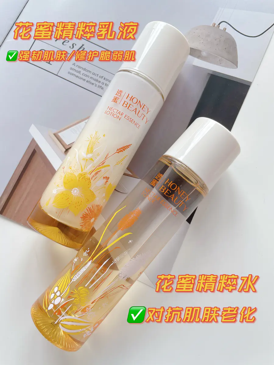 ①花蜜成分:千朵花卉仅酿成一克醇正蜂蜜,富含天然胶原和维E为肌肤补充胶原,有效修护,卓效抗氧