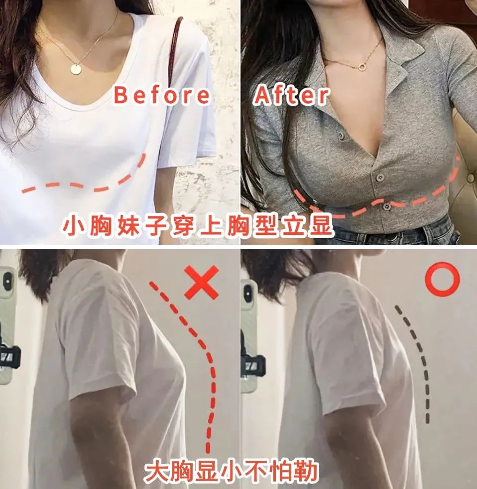你们瞧,上身效果真的绝了,虽然没有钢圈、果冻条的支撑,但它也能让你“挺”起来。