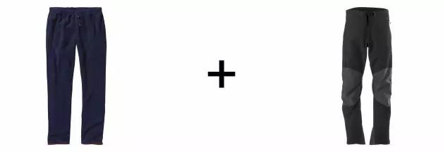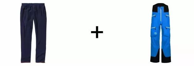 裤装可以采用透气保暖抓绒裤+带内衬冲锋裤。