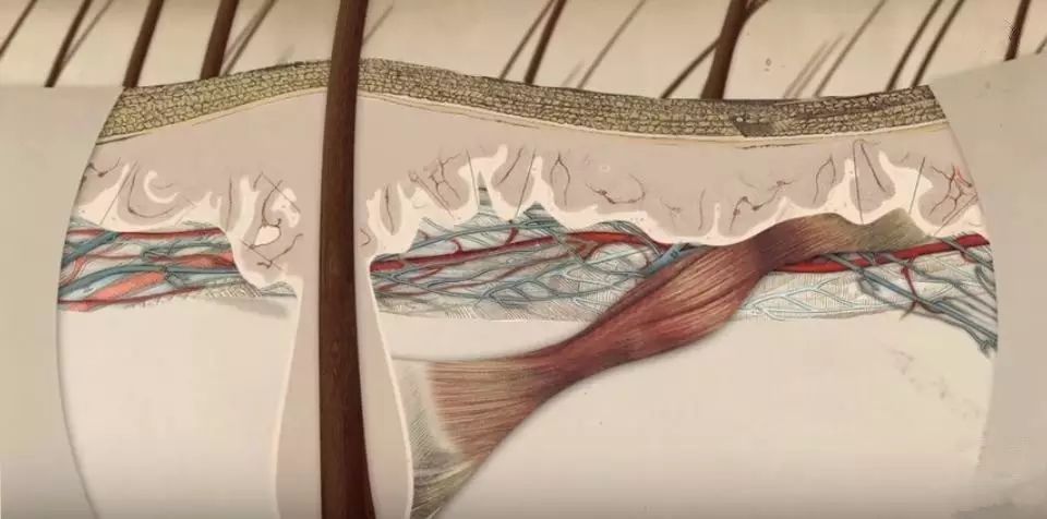 生活里,感到寒冷时,皮肤会起一层类似鸡皮的小疙瘩。是因为汗毛下的立毛肌收缩竖起,在皮肤表面形成紧密的保护层,留住暖空气,阻止体内的热量散失。