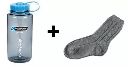2、装热水的瓶子结合备用羊毛袜可制作简易的暖水袋,塞入睡袋中增加温度。