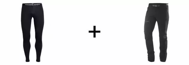 裤装可以采用带绒保暖压缩裤+厚防风软壳裤。
