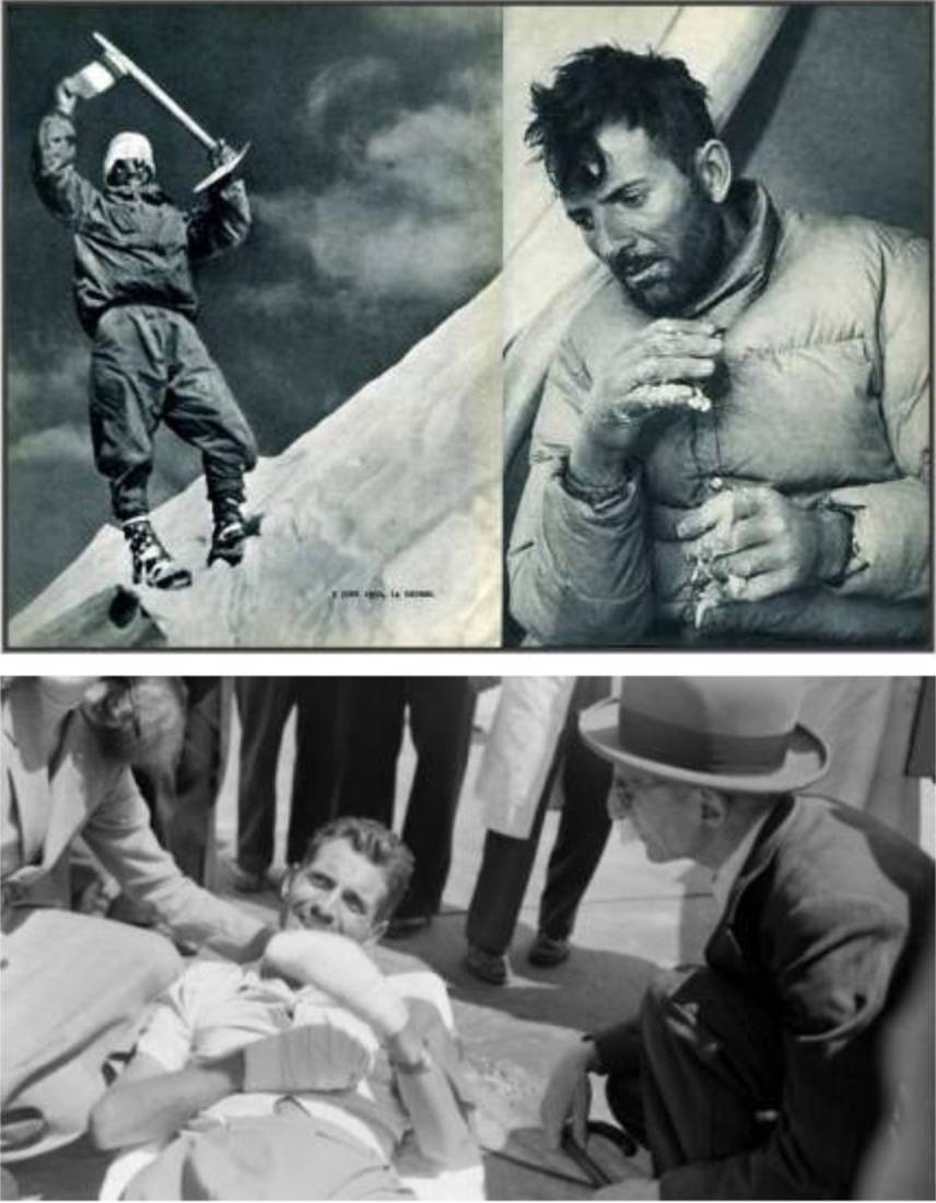 1950年,登山家莫里斯·赫尔佐格(Maurice Herzog)在安纳普尔纳峰下降时不慎丢失手套,双手严重冻伤,十个手指全部截肢。